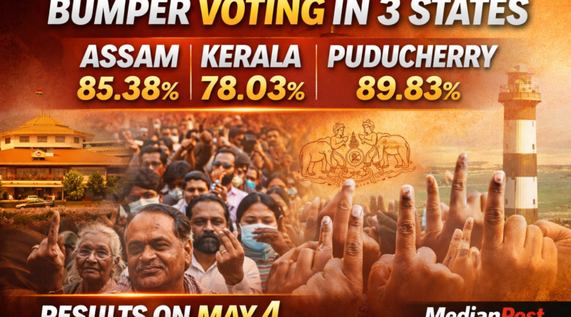 • Bumper Voting in 3 States: Assam 85.38%, Kerala 78.03%, Puducherry 89.83%, Results on May 4
