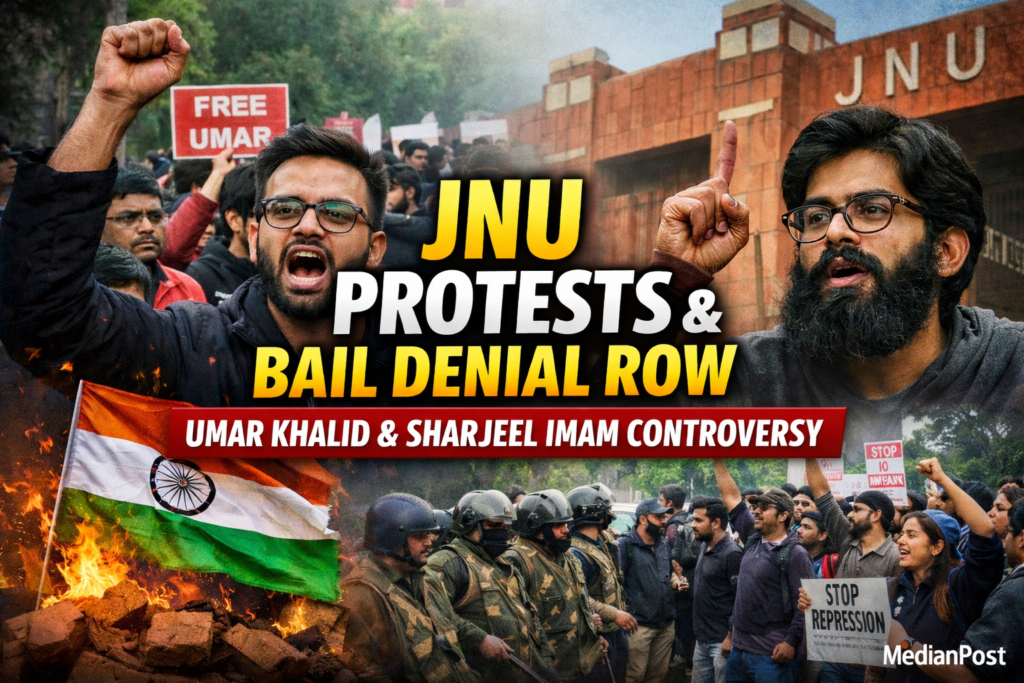 Jawaharlal Nehru University has once again found itself at the centre of a national political debate after protests erupted on campus following the denial of bail to former students Umar Khalid and Sharjeel Imam. The demonstrations have revived long-standing allegations of anti-India activities and ideological radicalism associated with the university.