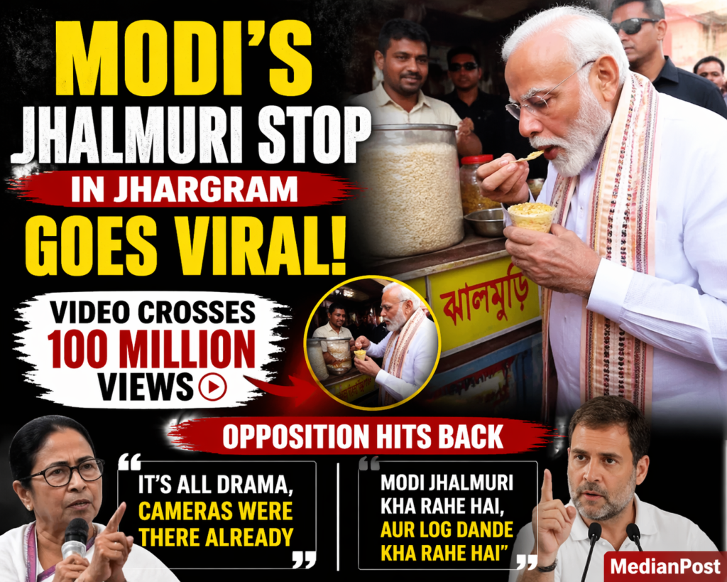 Election season in West Bengal is in full swing, and amid the usual rallies and speeches, a small, unexpected moment has grabbed massive attention online.During a campaign stop in Jhargram, Prime Minister Narendra Modi paused his convoy and walked up to a roadside stall selling jhalmuri a beloved Bengali street snack. What followed was simple but striking: Modi chatting briefly with the vendor and tasting the snack right there on the spot.