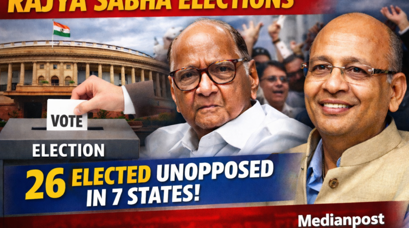The latest developments in the Rajya Sabha elections have drawn attention after 26 candidates from seven states were elected unopposed, according to announcements made during the nomination process. Among the prominent leaders elected unopposed are Sharad Pawar and Abhishek Manu Singhvi, highlighting the political significance of the latest results.